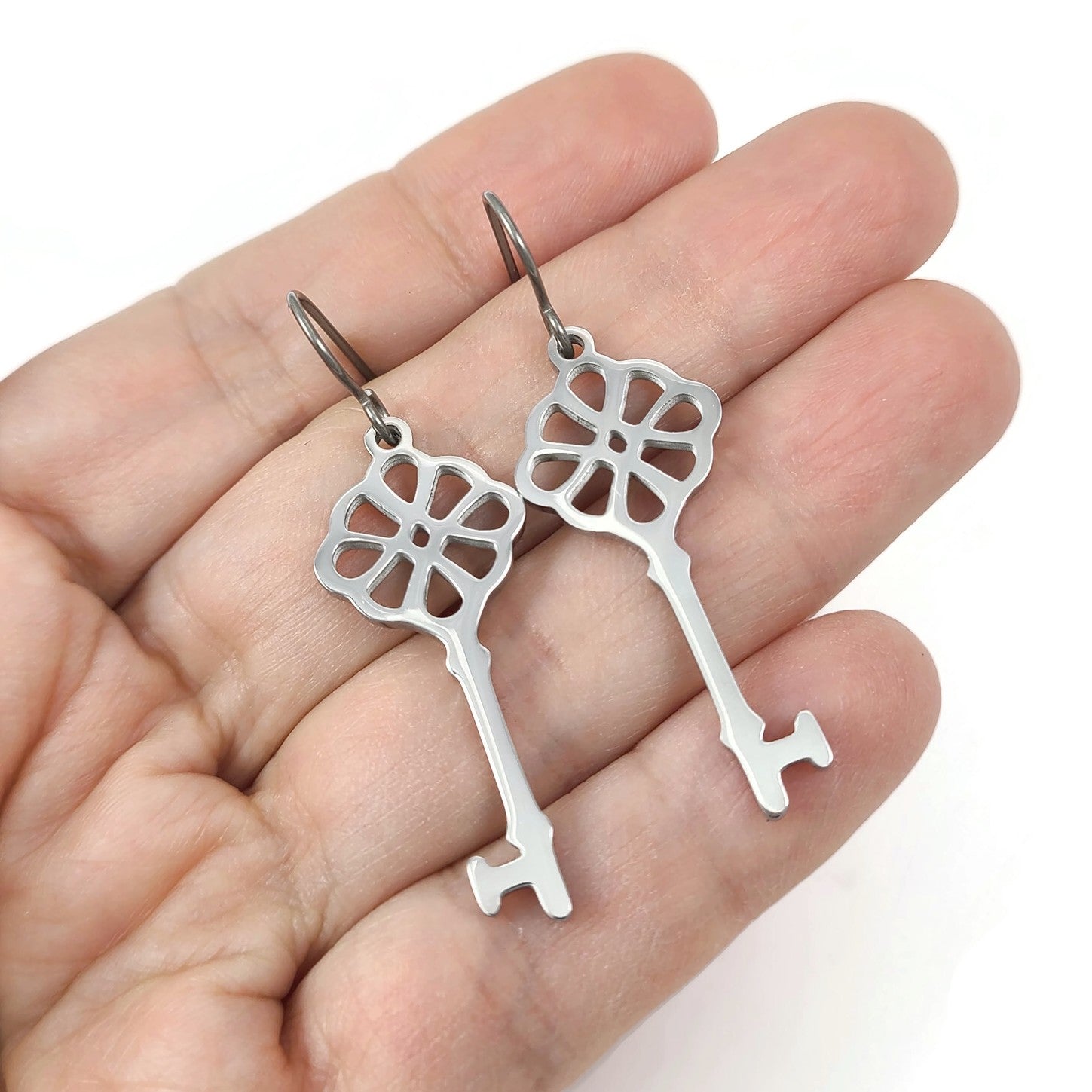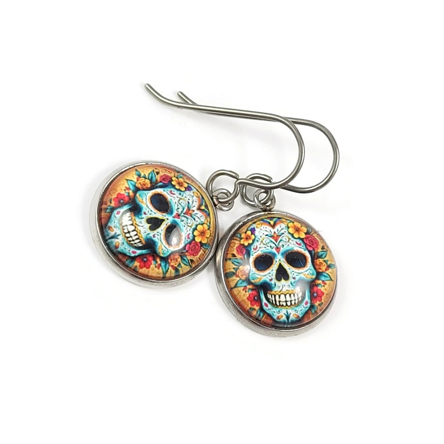 Boucle d'oreille pendentif calaveras - Titane, acier inoxydable et verre