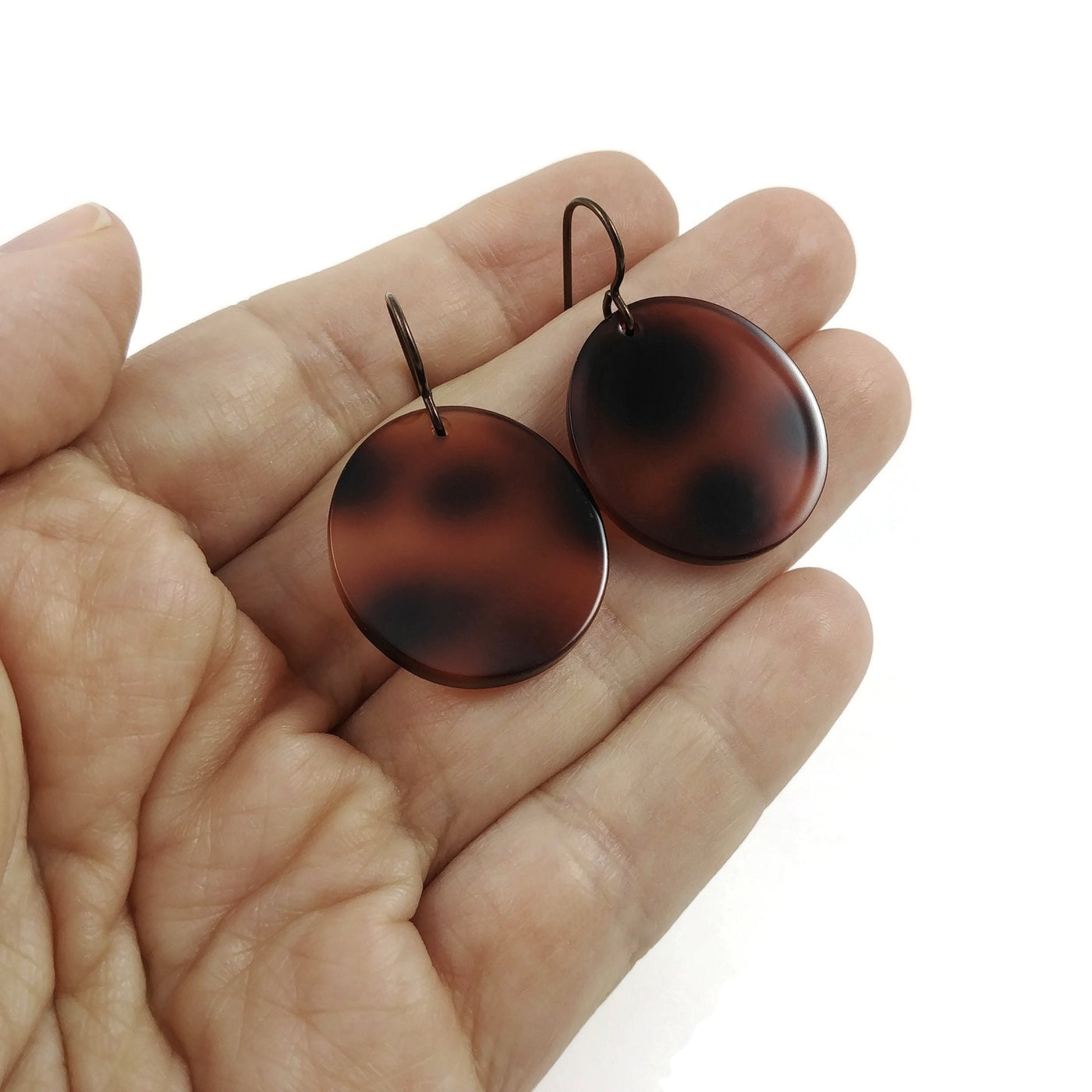 Montées sur des crochets en titane 100% pure, hypoallergénique. Les pendentifs en résine sont non-allergènes.