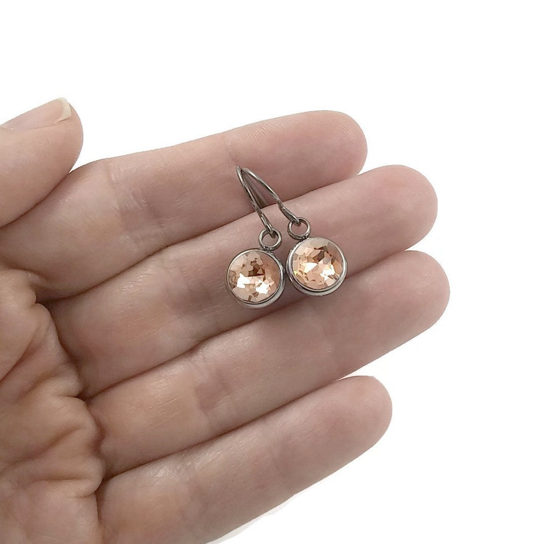 Boucles d'oreille roses pêche à facettes - Titane, inox et strass