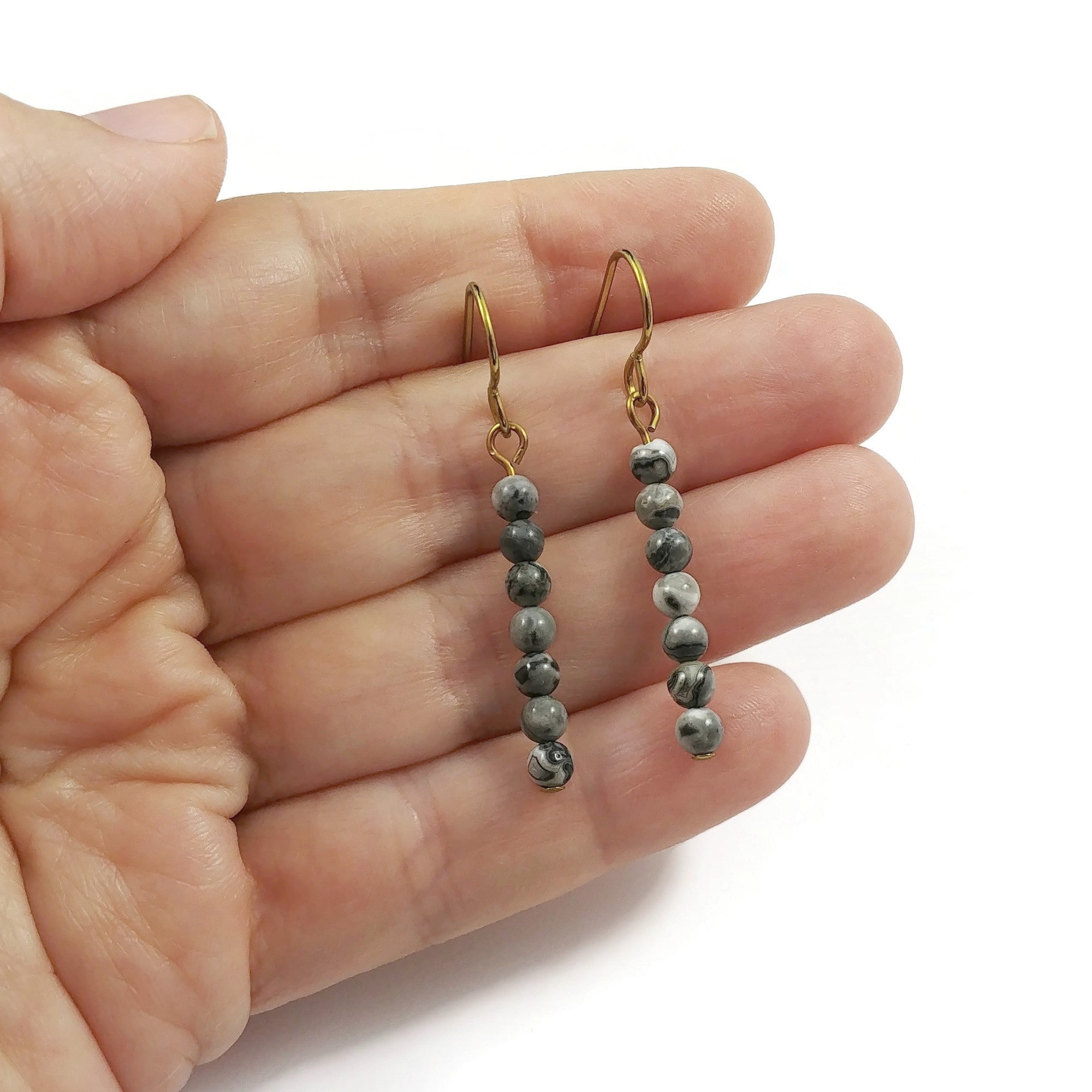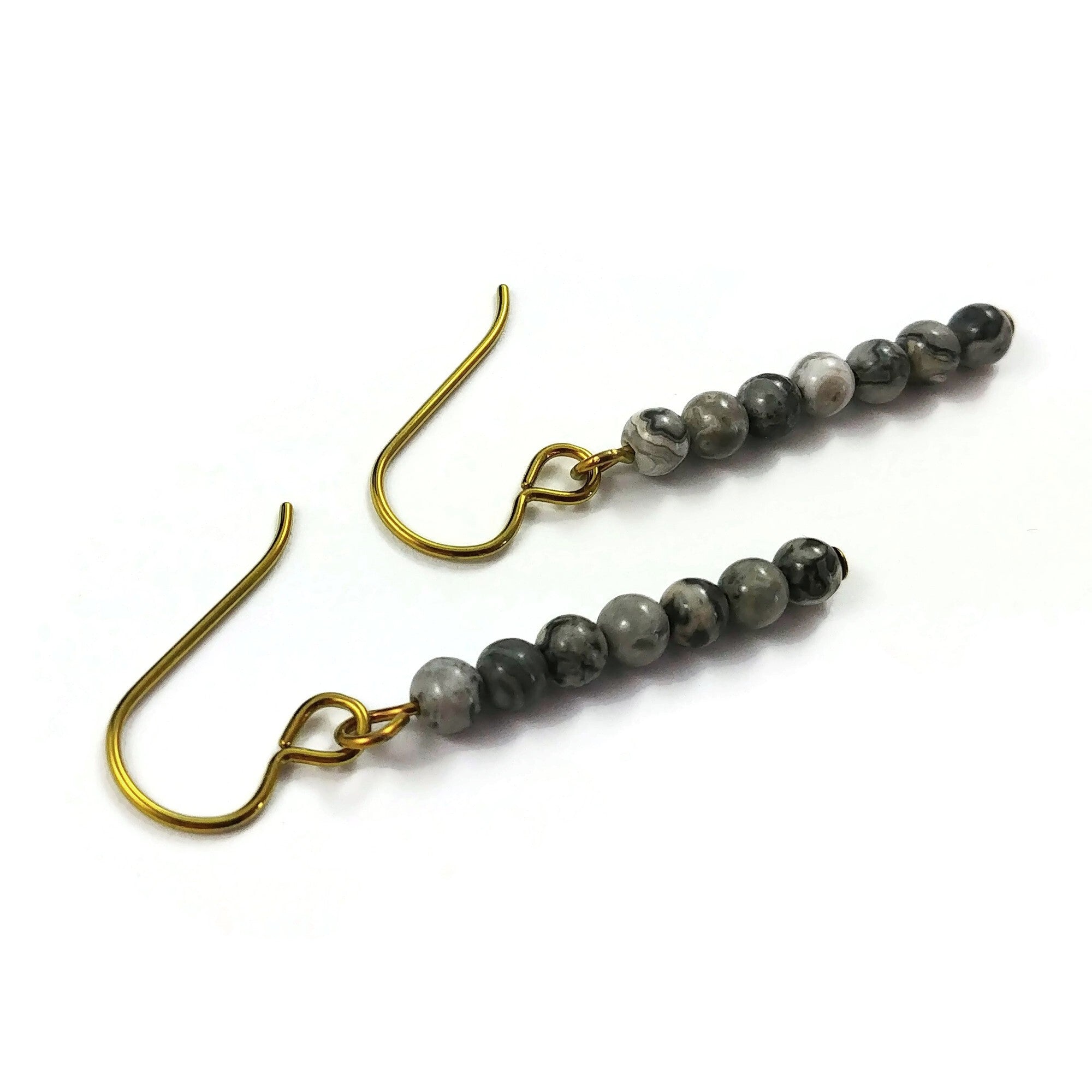 Montées sur des crochets en niobium 100% pure, hypoallergénique. Les perles en pierres naturelles sont montés sur pur niobium.