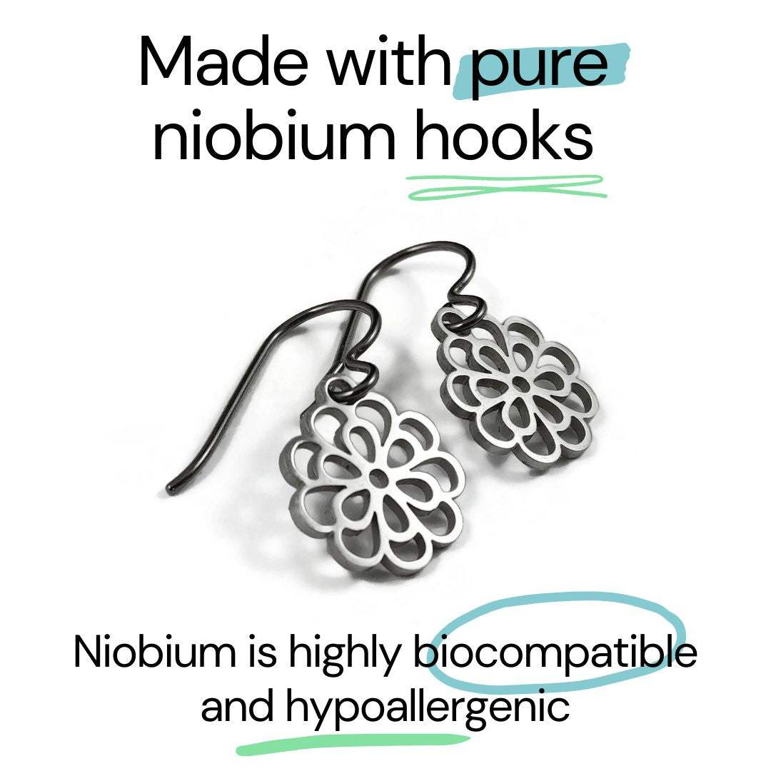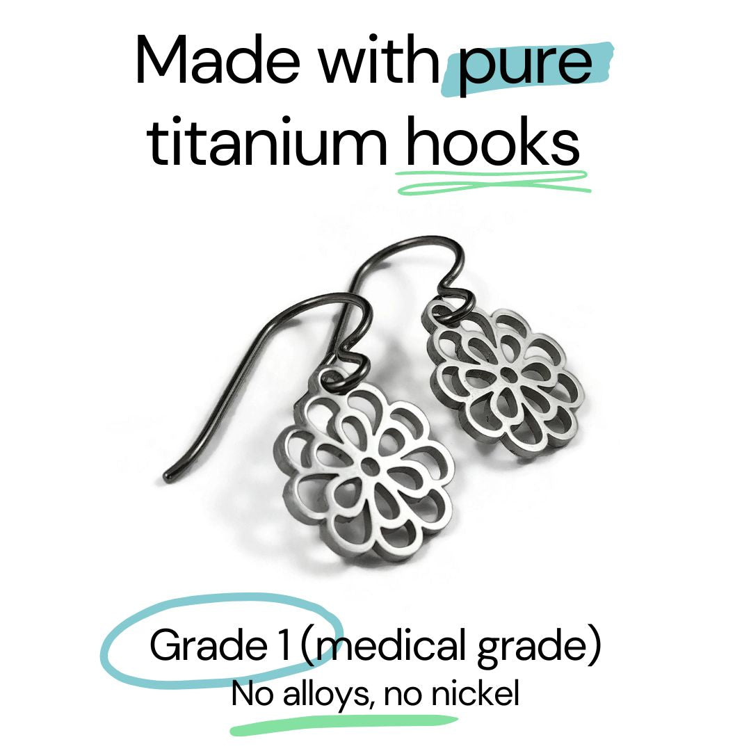 The cutest flower dangle earrings. The safest hypoallergenic jewelry, handmade carefully one by one. Sold in pairs.