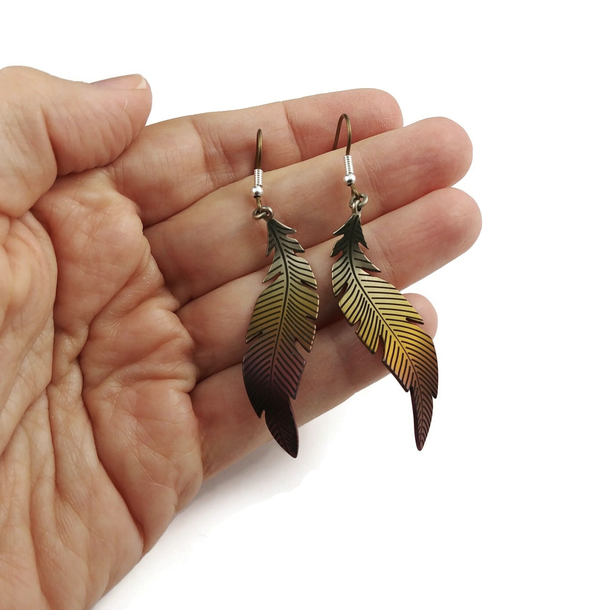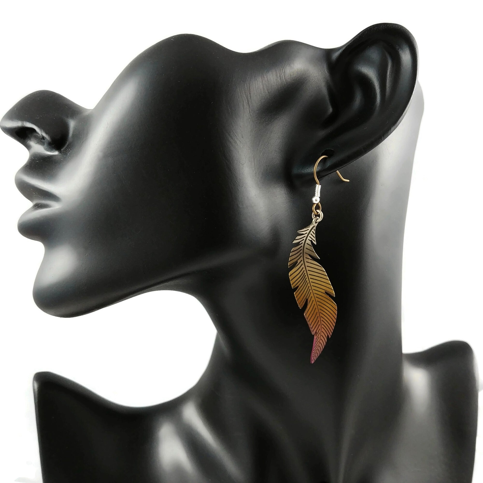 Feathers are a symbol of hope, balance and good luck! These lightweight, hand-crafted 50mm drop earrings are pretty, colourful and comfortable to wear.