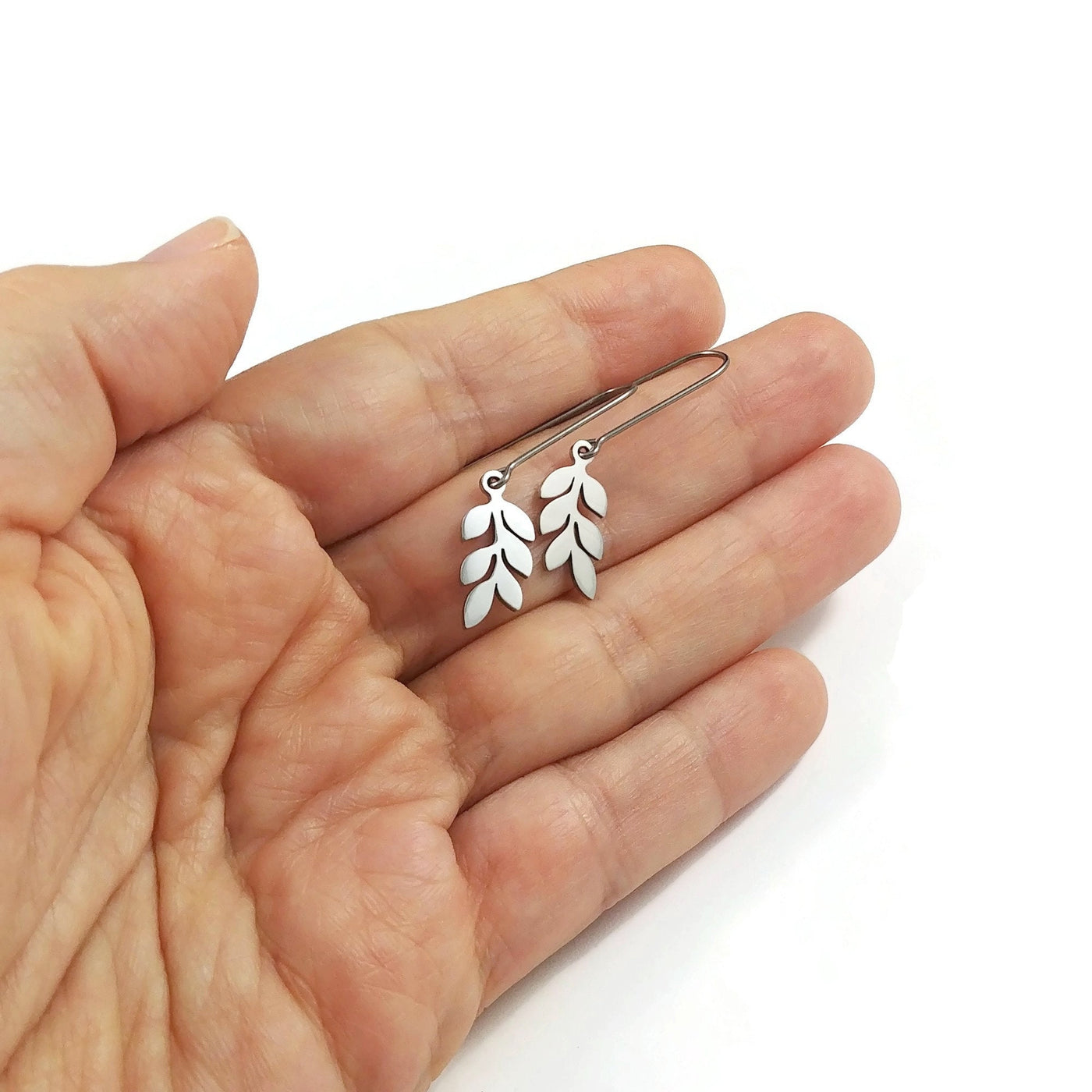 Dainty silver branch earrings. Lovely nature inspired dangle earrings. Pure niobium threader for sensitive ears.