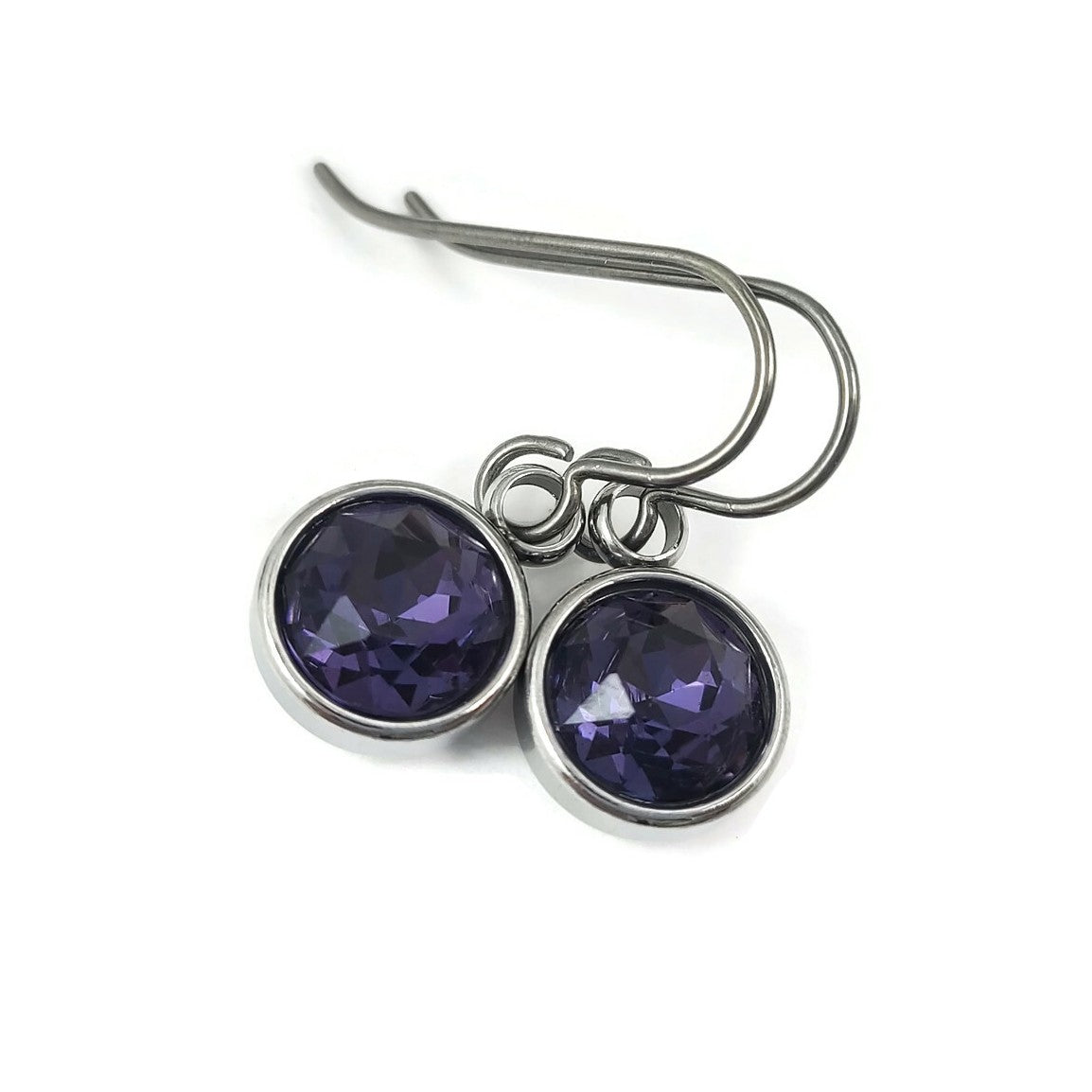 So beautiful earrings! You'll want to wear them every day. Very fashionable with this purple rhinestone faceted pendant.